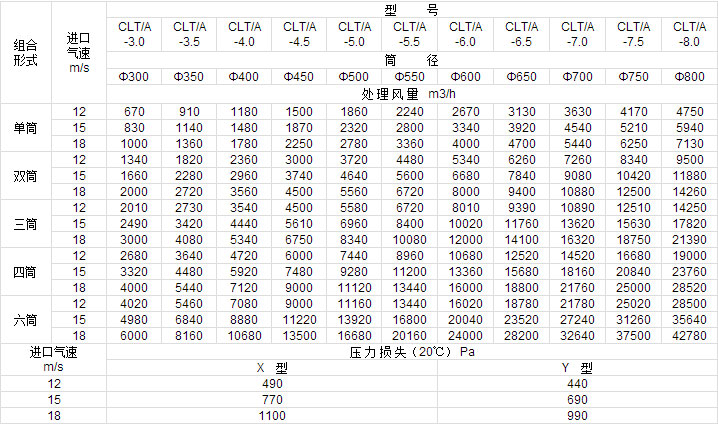 CLT型旋風(fēng)除塵器處理氣量和壓力損失: