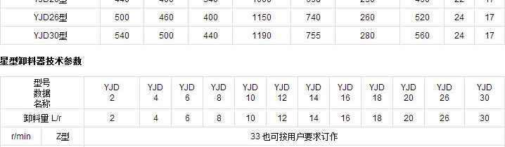 YJD、XLD系列卸料器,又名卸料閥、卸灰閥,本裝置是除塵設(shè)備,輸送、排灰、關(guān)風(fēng)和其它設(shè)備給料的主要設(shè)備,適用于將壓力狀態(tài)下的粉塵或顆粒狀物連續(xù)地、順利地排入大氣,是氣力輸送和通風(fēng)除塵網(wǎng)路中的一種重要設(shè)備。其主要工作件是旋轉(zhuǎn)的葉輪,既起著輸送物料的作用,又擔(dān)負(fù)密封作用。廣泛用于糧食、食品、飼料、油脂、化工、儲(chǔ)運(yùn)及其它工業(yè)中的氣力輸送或通風(fēng)除塵網(wǎng)路卸料器之排料、排塵。